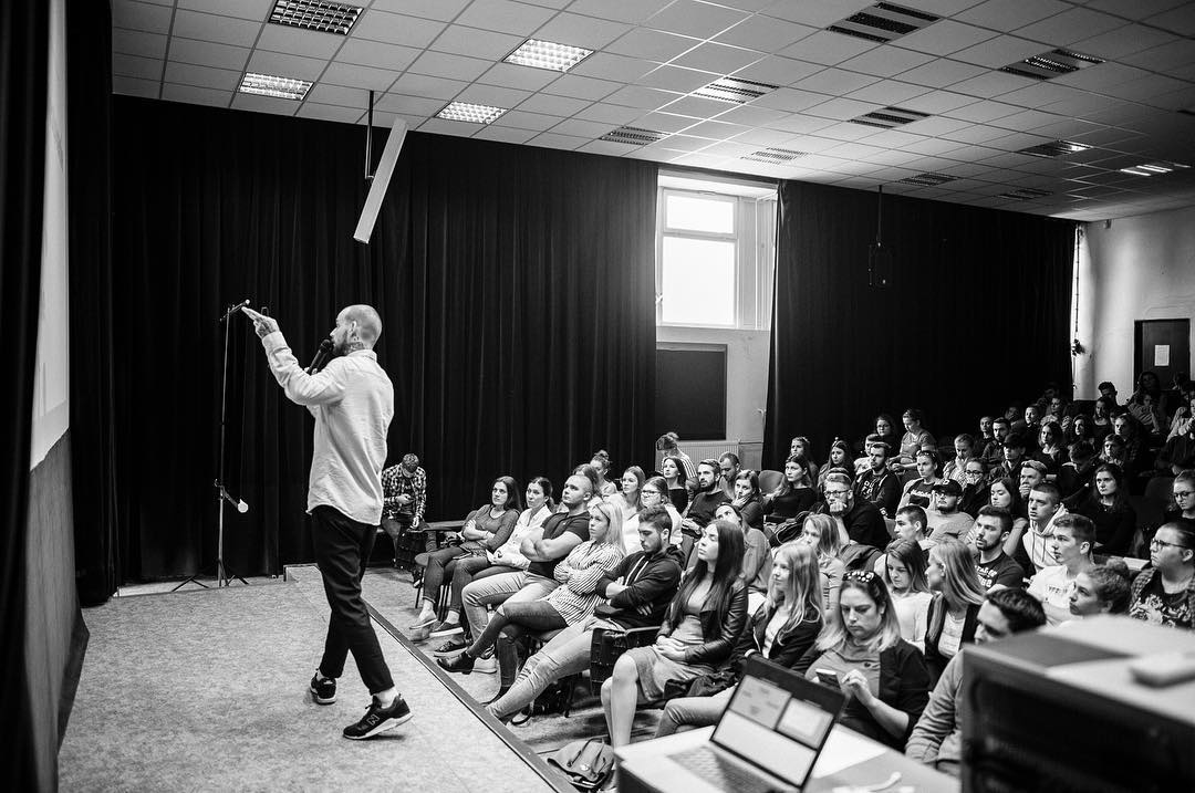 Pravidelne vystupujem na konferenciách, mám prezentácie a školenia vo firmách na témy AI a produktivity.
